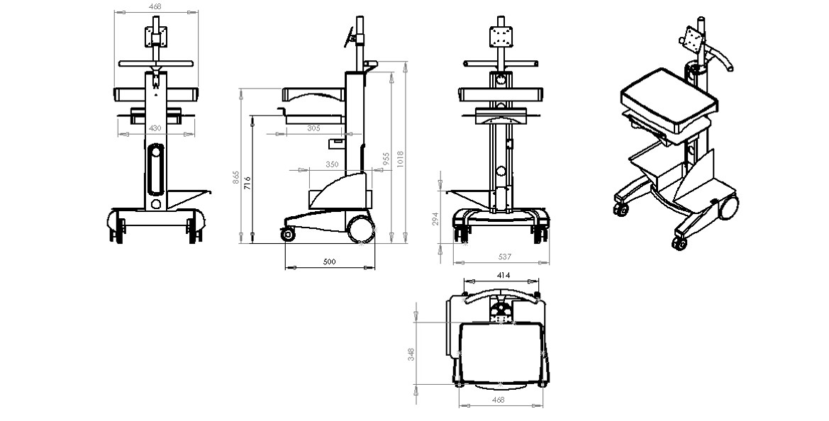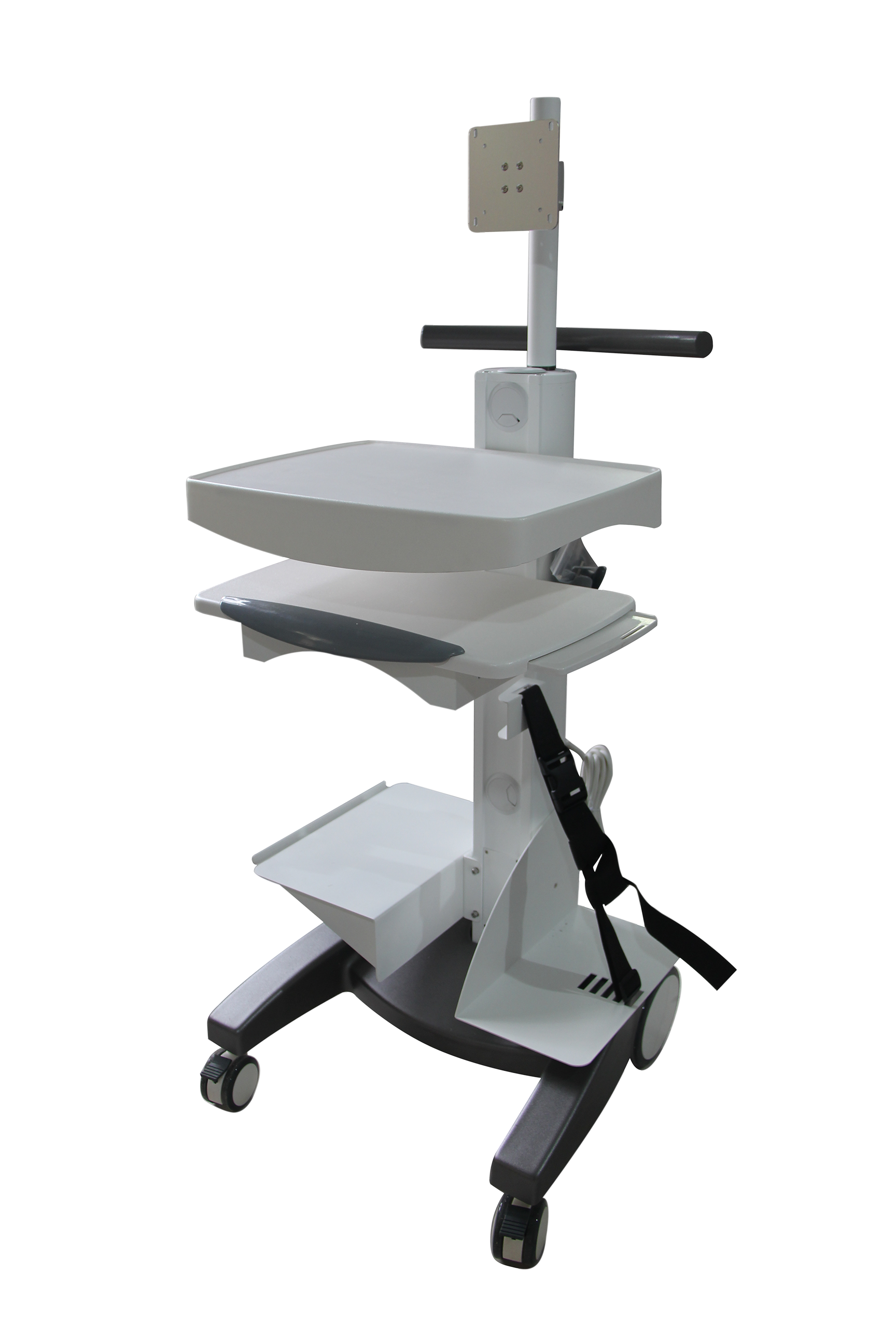 本推車(chē)適合多種配置,包括筆記本電腦、電腦主機(jī)搭配顯示器。可放置鍵盤(pán)、鼠標(biāo)、主機(jī)和打印機(jī)。合理理線(xiàn)裝置,配置電源插座。